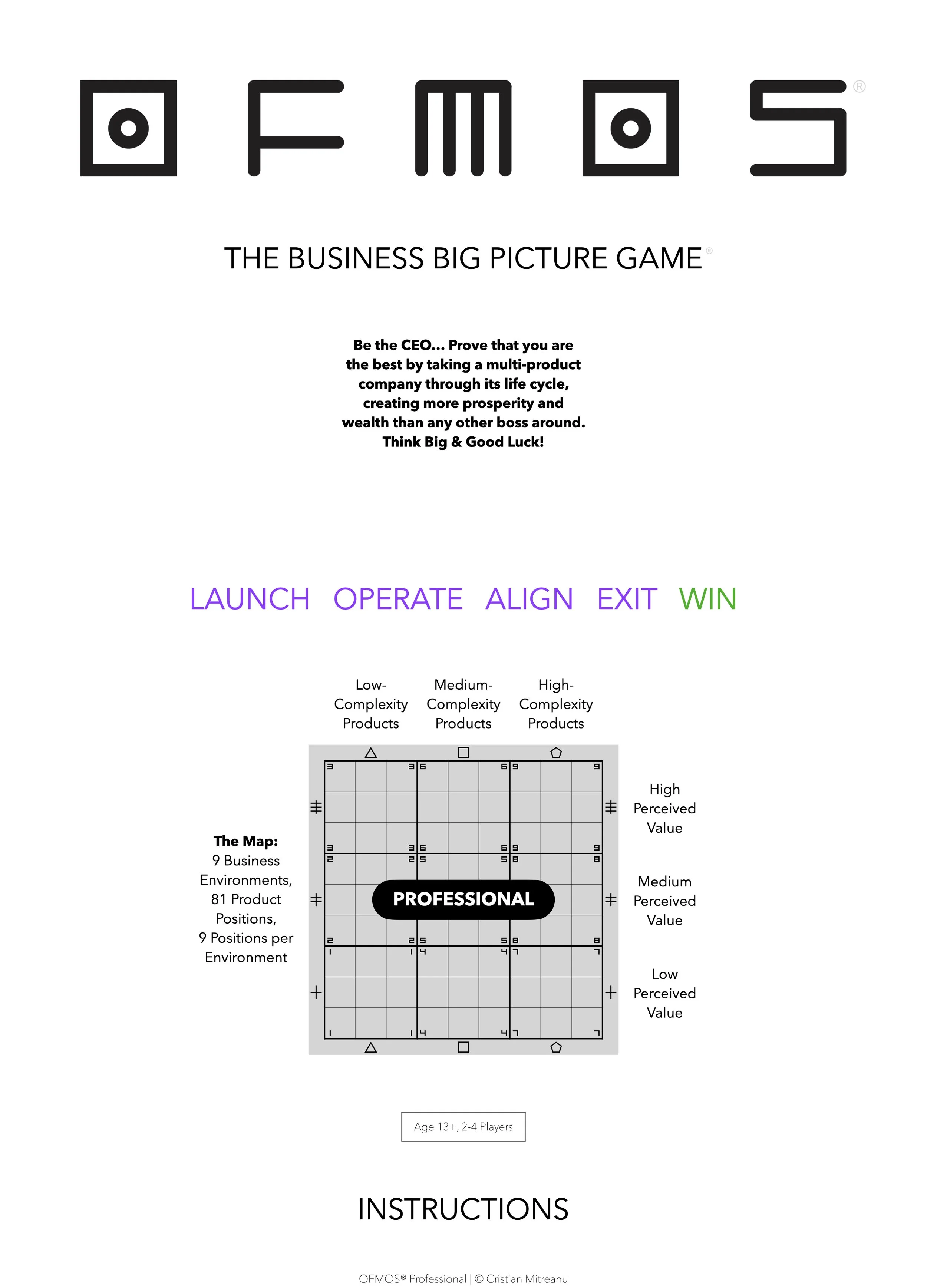 Patents: US11285378, USD833533 | Registered Trademarks: OFMOS®, The Business Big Picture Game®, Be the CEO® | Copyright © Cristian Mitreanu. All rights reserved.